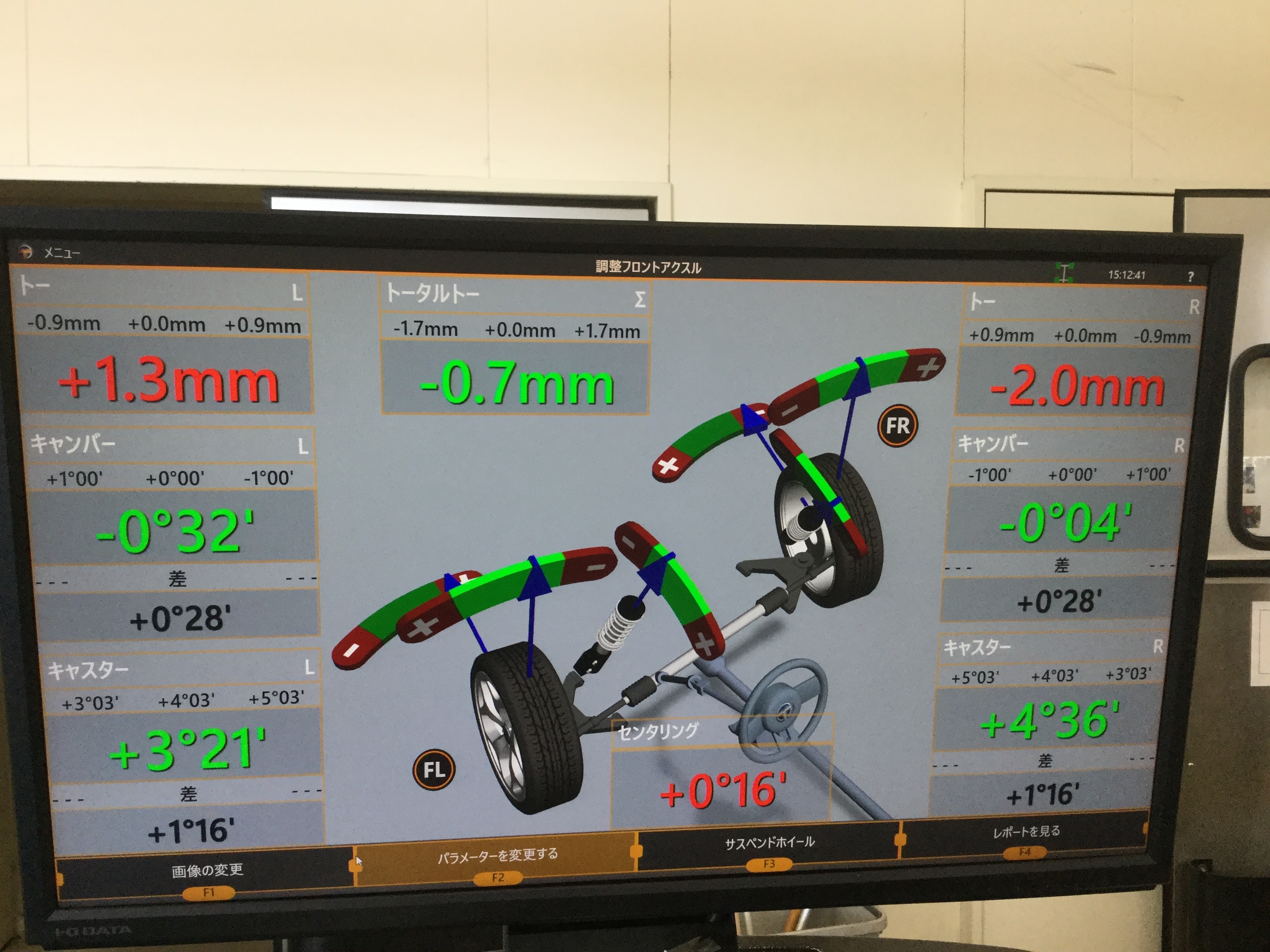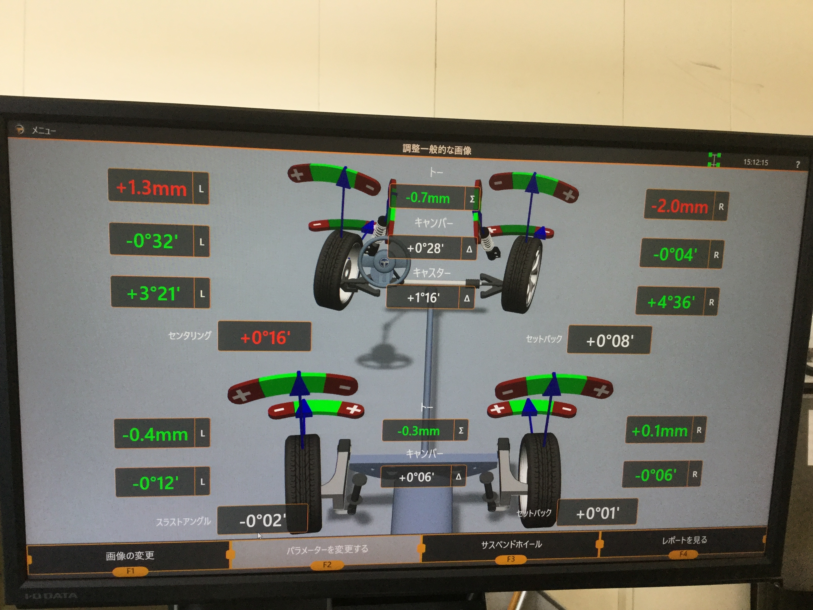 トー角だけでなく、キャンバーもキャスターも左右差を限りなく無くす方向で調整完了です!