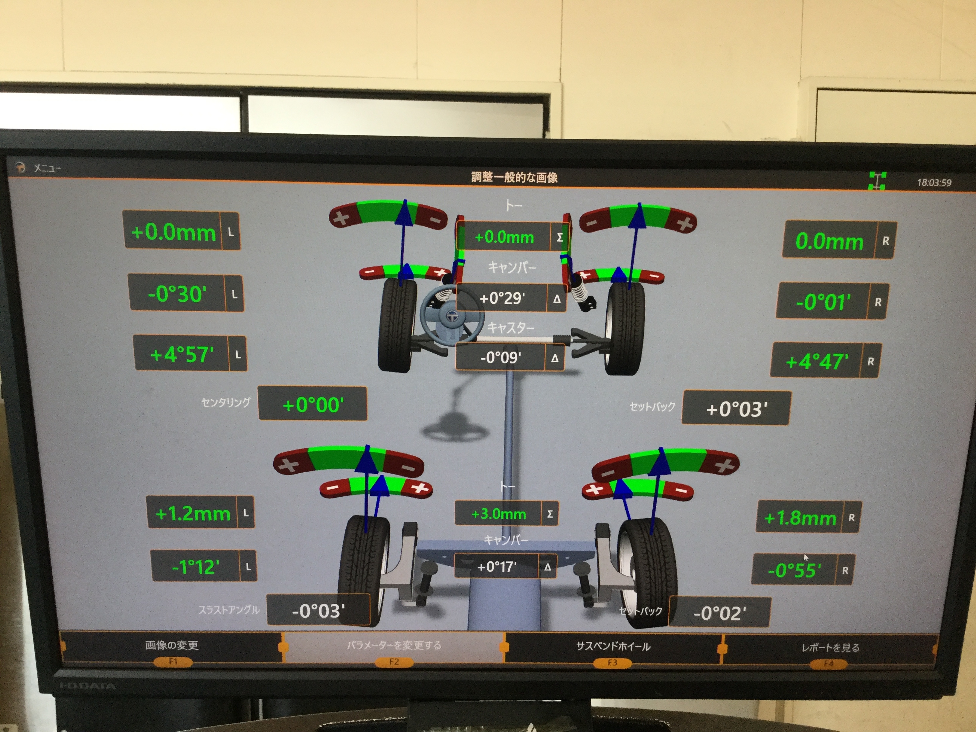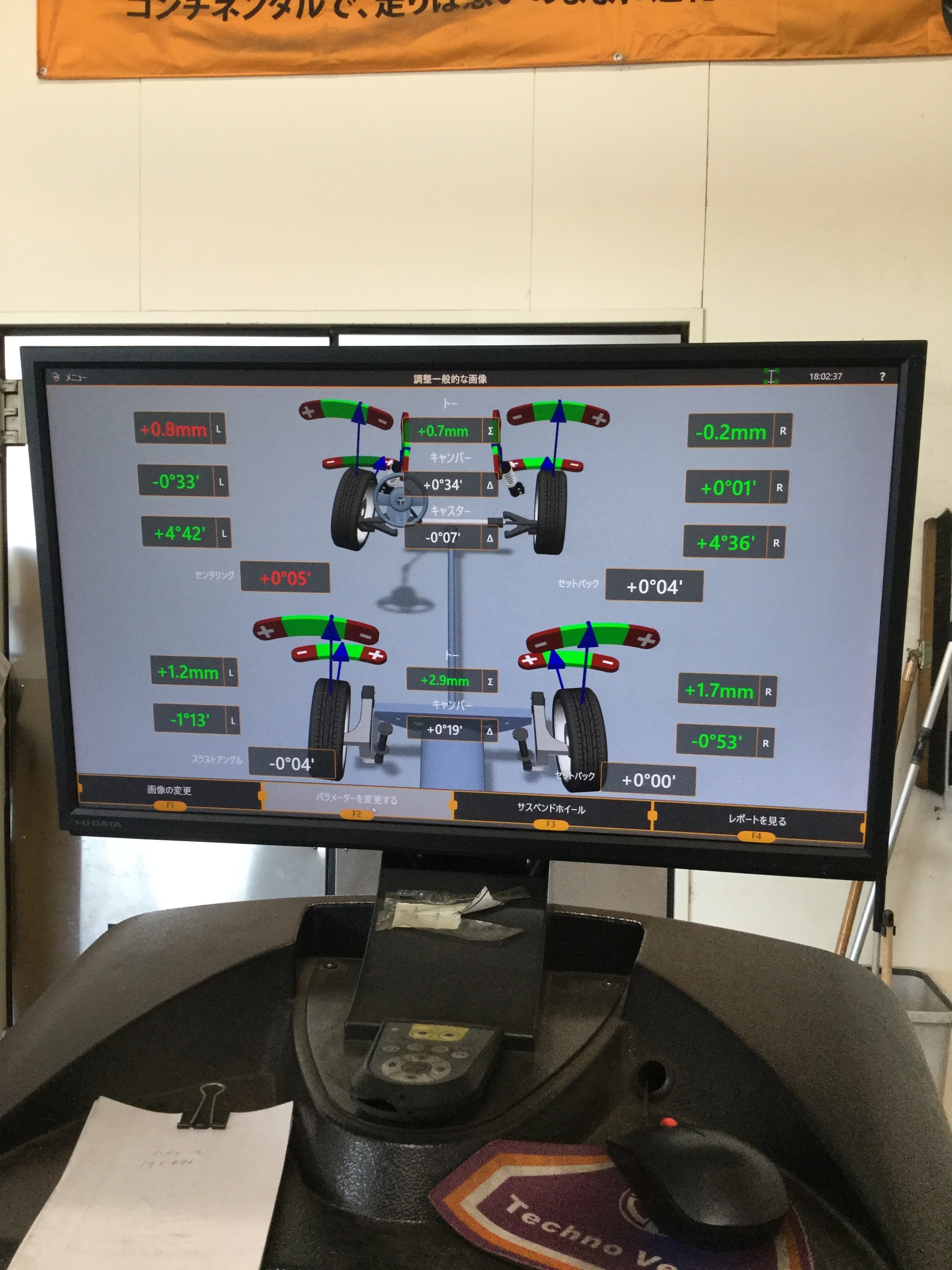 測定の結果、左前のトーが大幅にずれていることがわかりました。