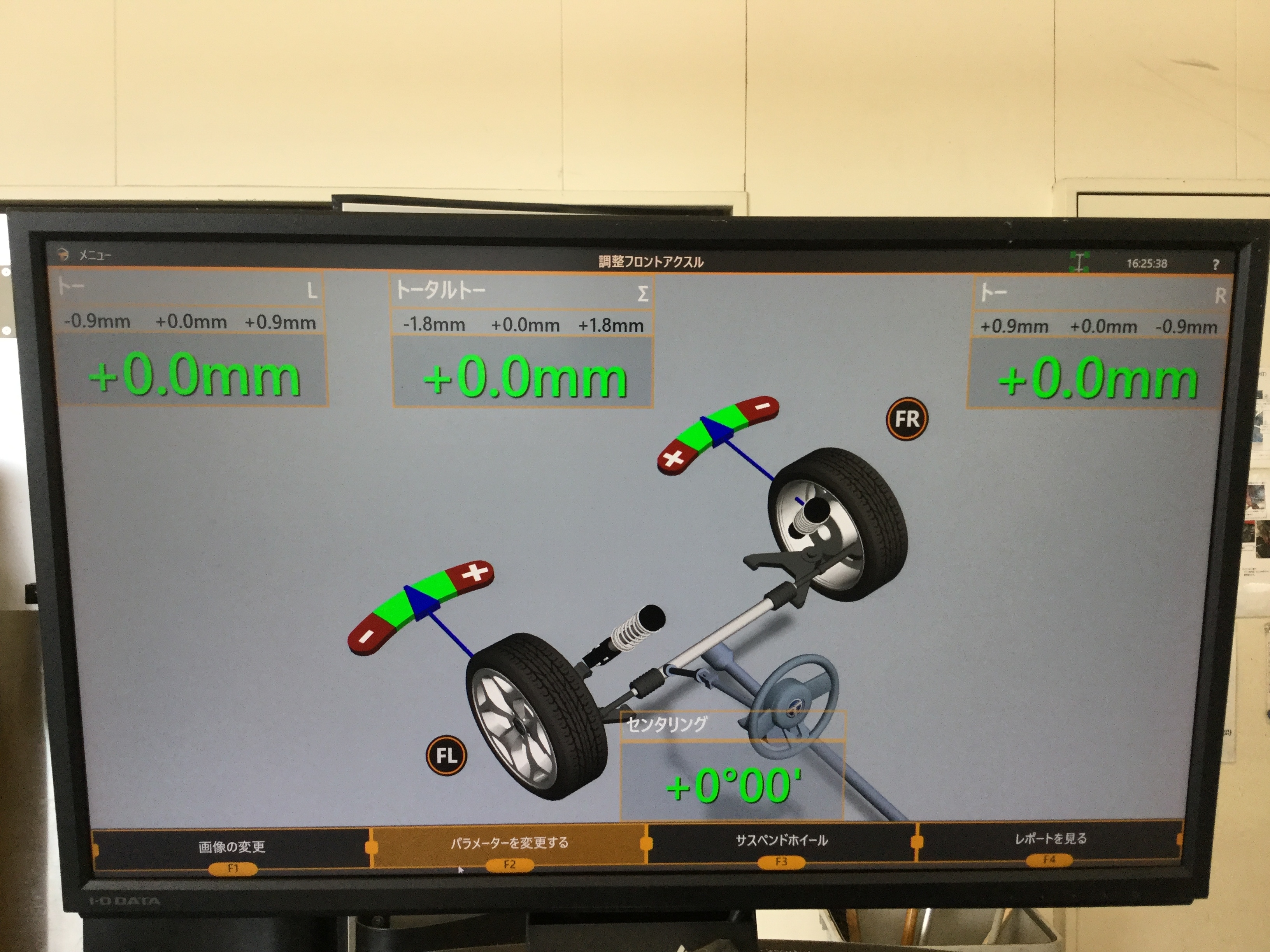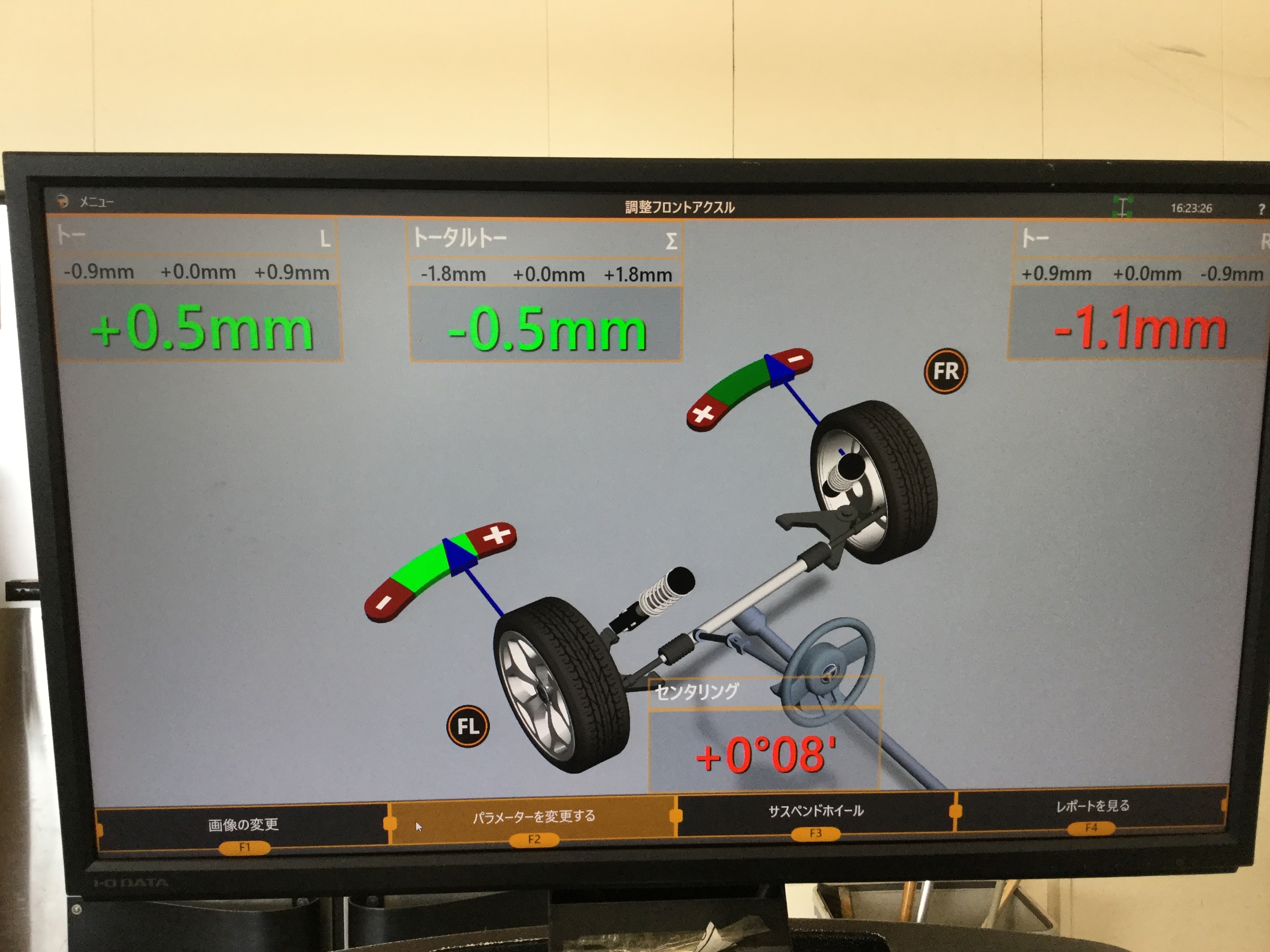 右前輪が基準値+0.0mmからー1.1mmのズレがあります。