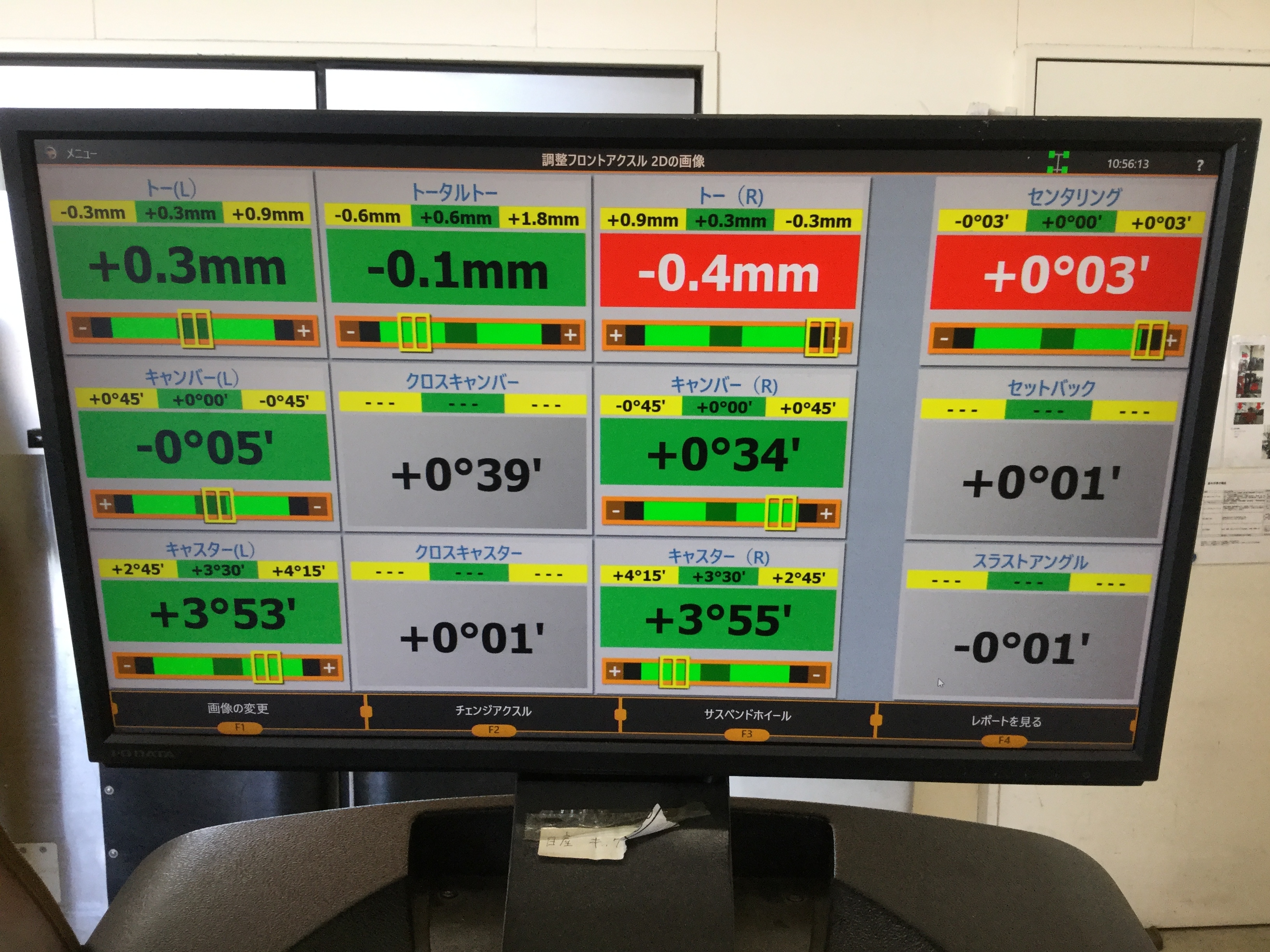 右側のトーが−0.4mmまでずれていました。