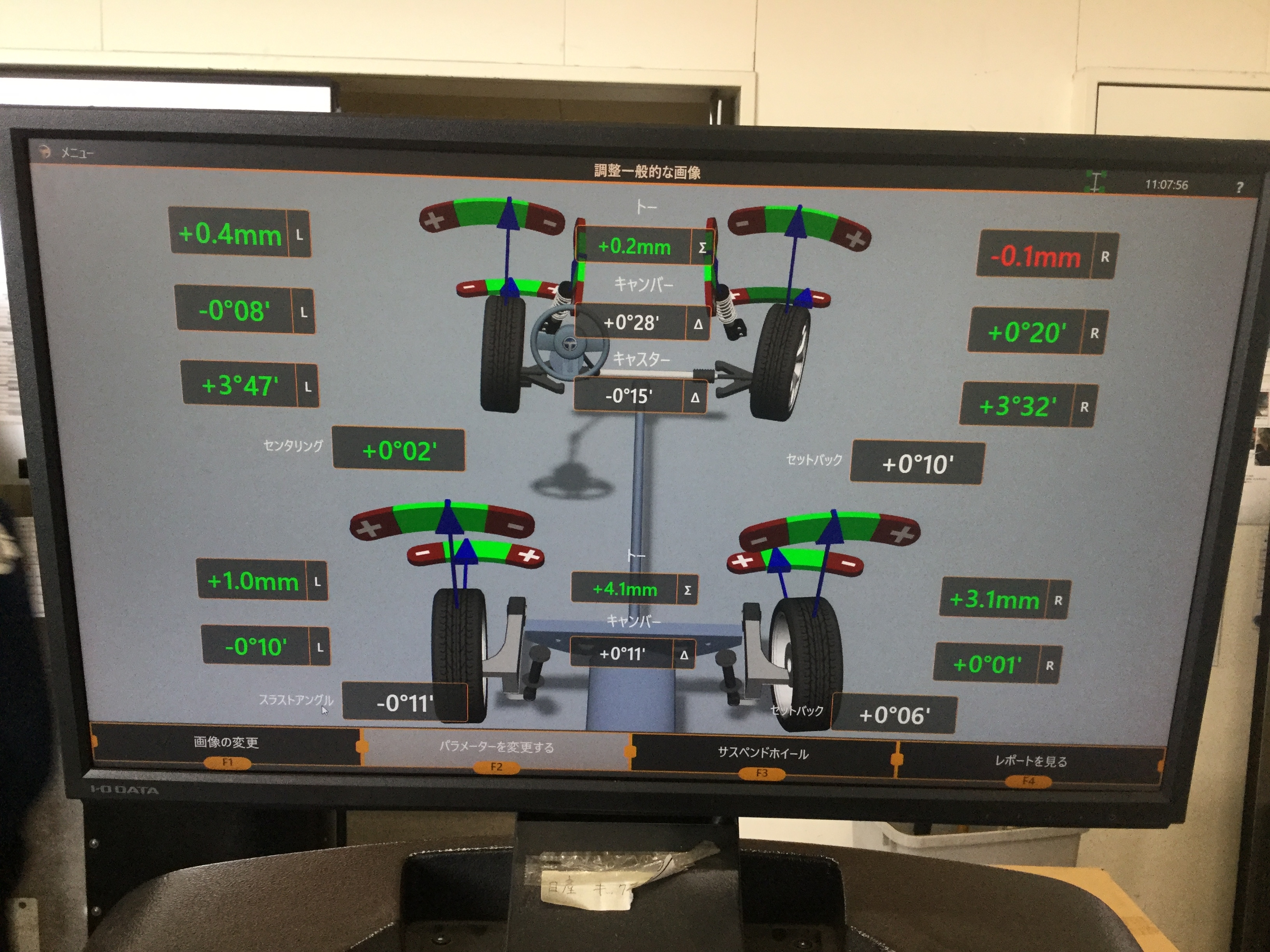 コチラのお車はフロントのトー角の調整が可能ですので、基準値の中央値の+0.4mmにしっかり調整させて頂きました!!