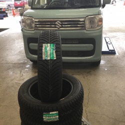 タイヤ市場専売オールシーズンタイヤ! タントカスタム 155/65R14 LANDSAIL 4-SEASONS タイヤ交換