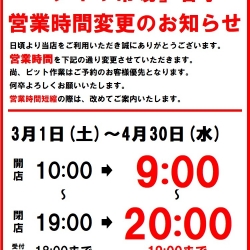 AM9:00~PM8:00(ピット作業受付:AM9:00~PM7:00)1月/2月/5月/6月/7月/8月/9月