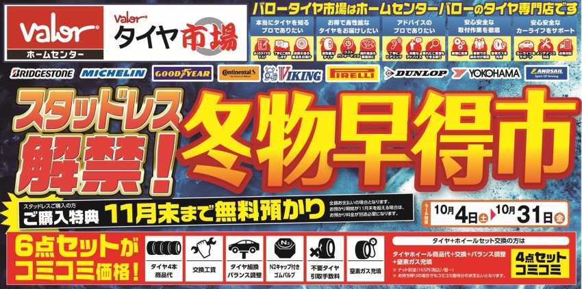 スタッドレスタイヤ解禁!!冬物早得市☆
