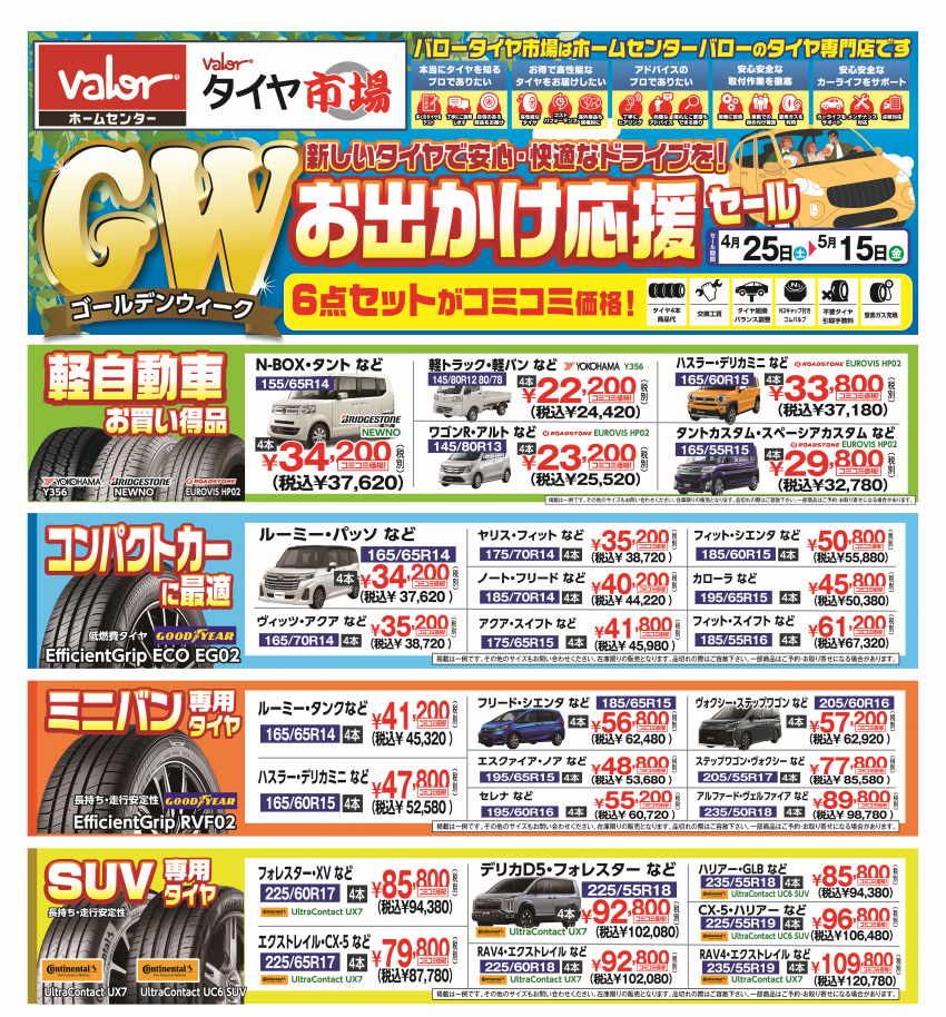 バロータイヤ市場北方店では、明日4月25日(土)~5月15日(日)まで