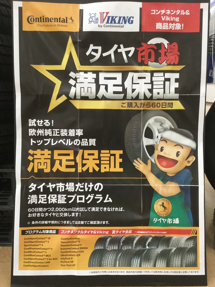 お買い上げのお客様を対象にタイヤの満足保証を実施中です!