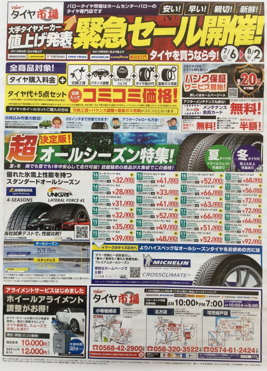 8月よりタイヤ値上げラッシュ(>_<)