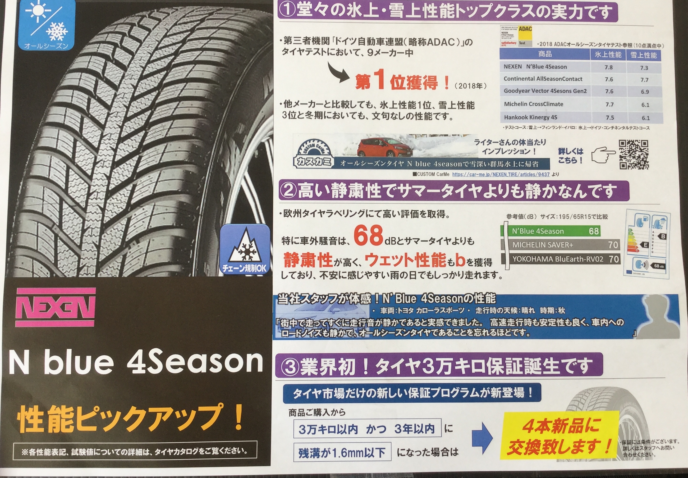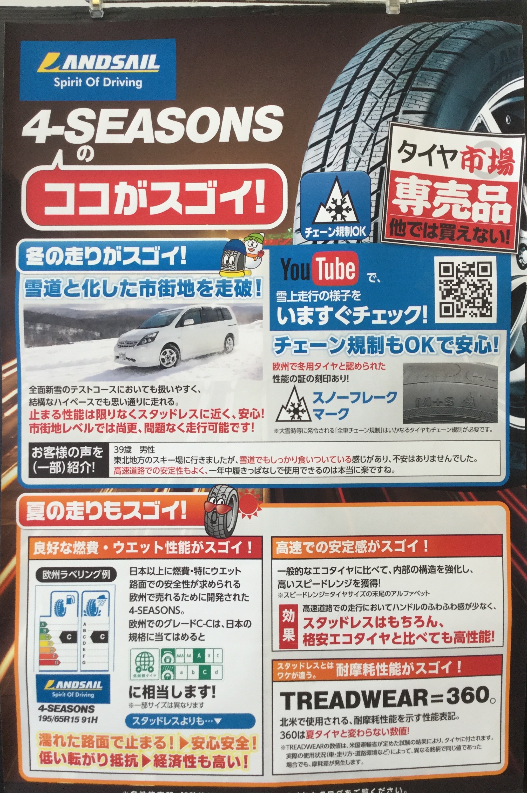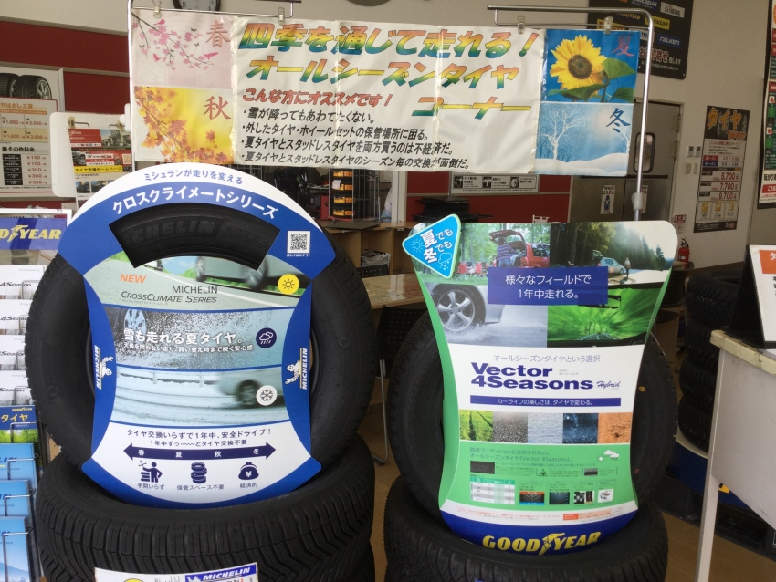 当店では、ミシュラン・グッドイヤー・ネクセン・ランドセイルのオールシーズンタイヤを取り扱っています。