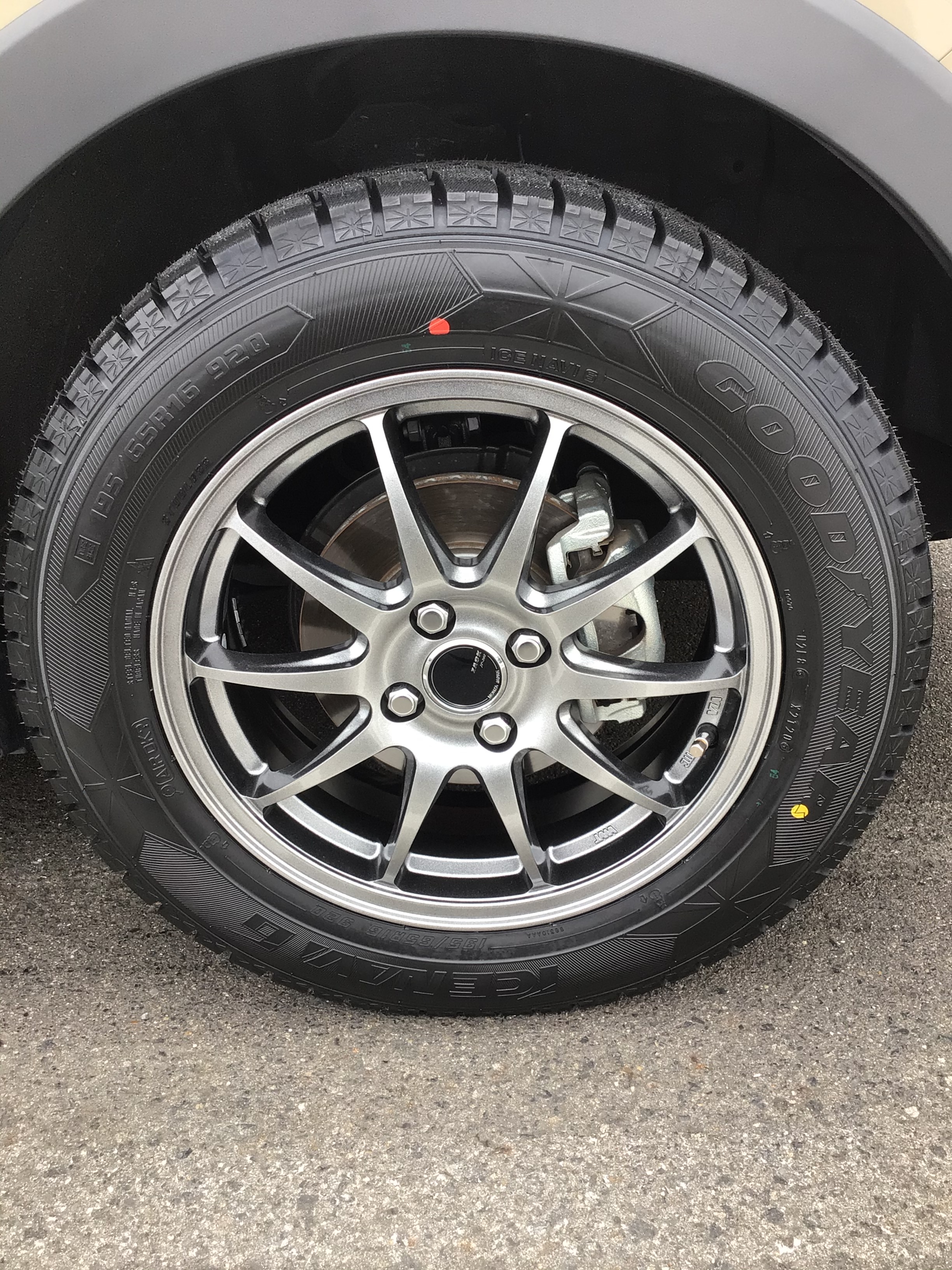 さて本日はその名の通り人気がライジング中のコンパクトSUV、トヨタ・ライズに、ご購入いただきましたスタッドレスタイヤ(グッドイヤー ICENAVI6)とホイール(ジャパン三陽 ZACK JP202)のセットを取り付けさせていただきました!!![]()