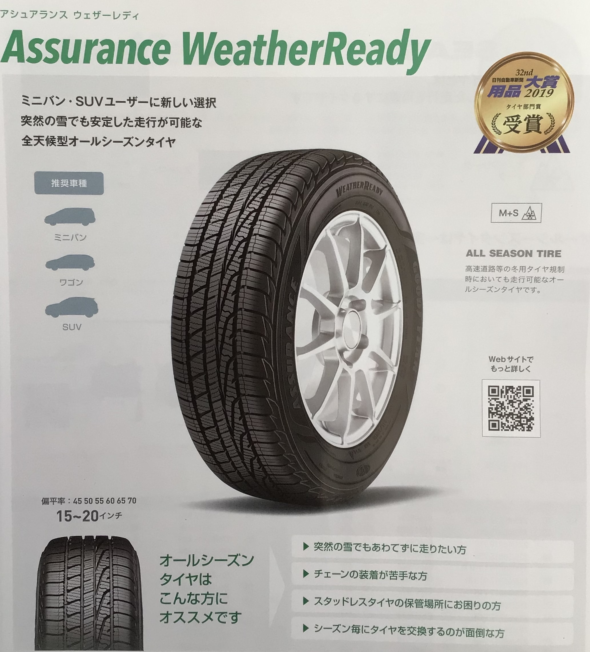 さて、本日はグッドイヤーのミニバン・SUV用高性能オールシーズンタイヤ、Assurance WeatherReadyのご紹介です!