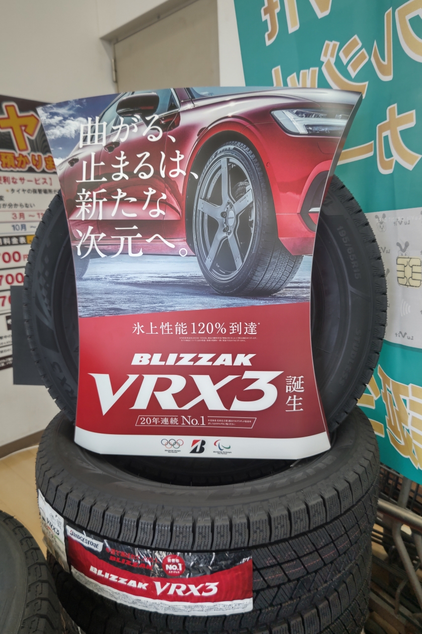 今日は売り場にスタッドレスタイヤを陳列しています。