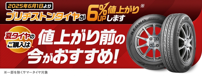 | 2025年6月1日より、下記のタイヤメーカー製品の価格が改定(値上げ)されます。 | ||||||||