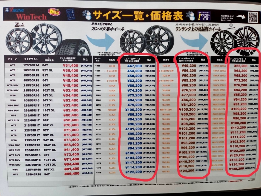 (写真の金額はバイキングWinTech6のタイヤホイールセットの金額です。)