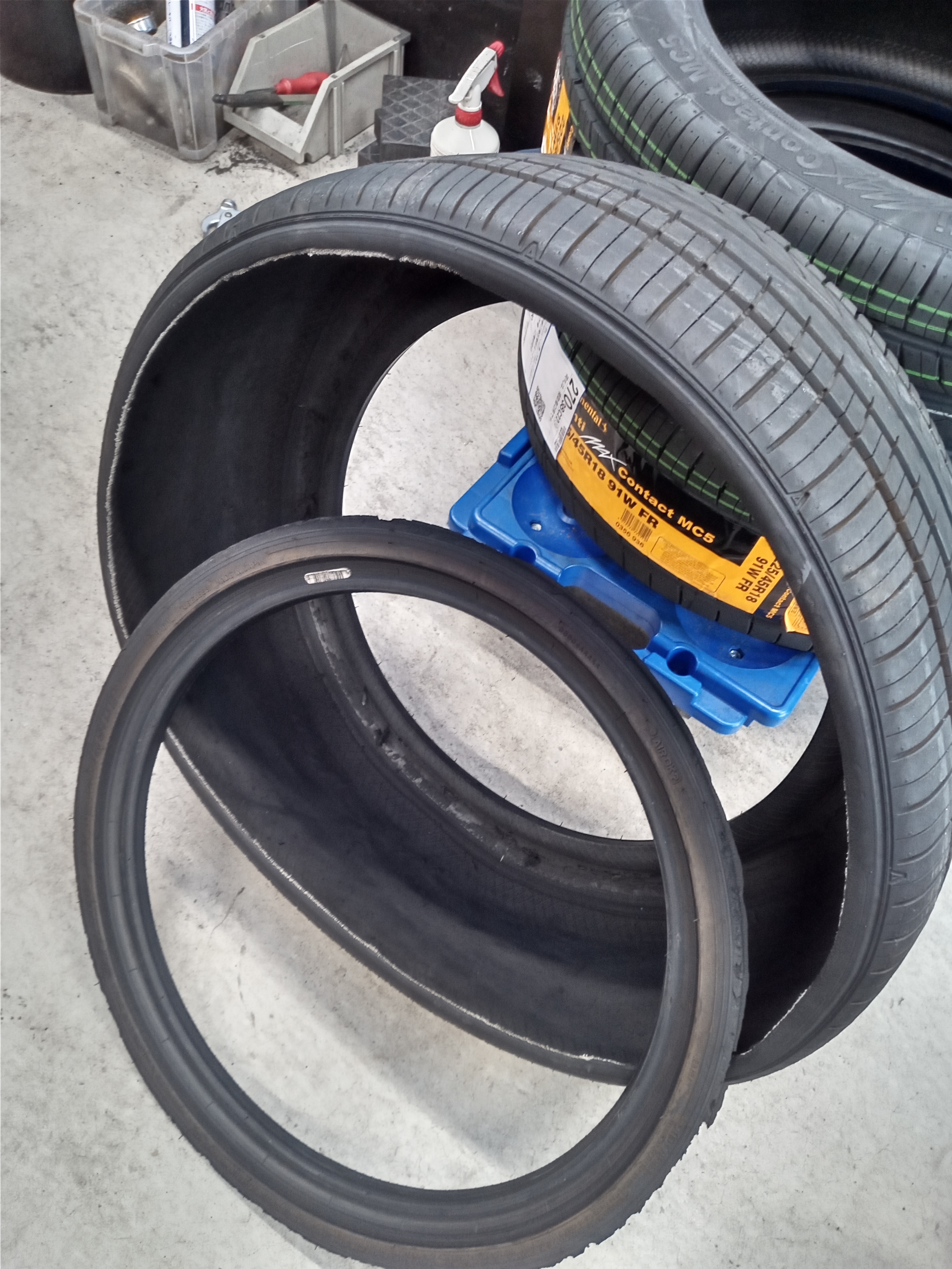 このようにワイヤーが見えているタイヤはバーストの危険があります!!!