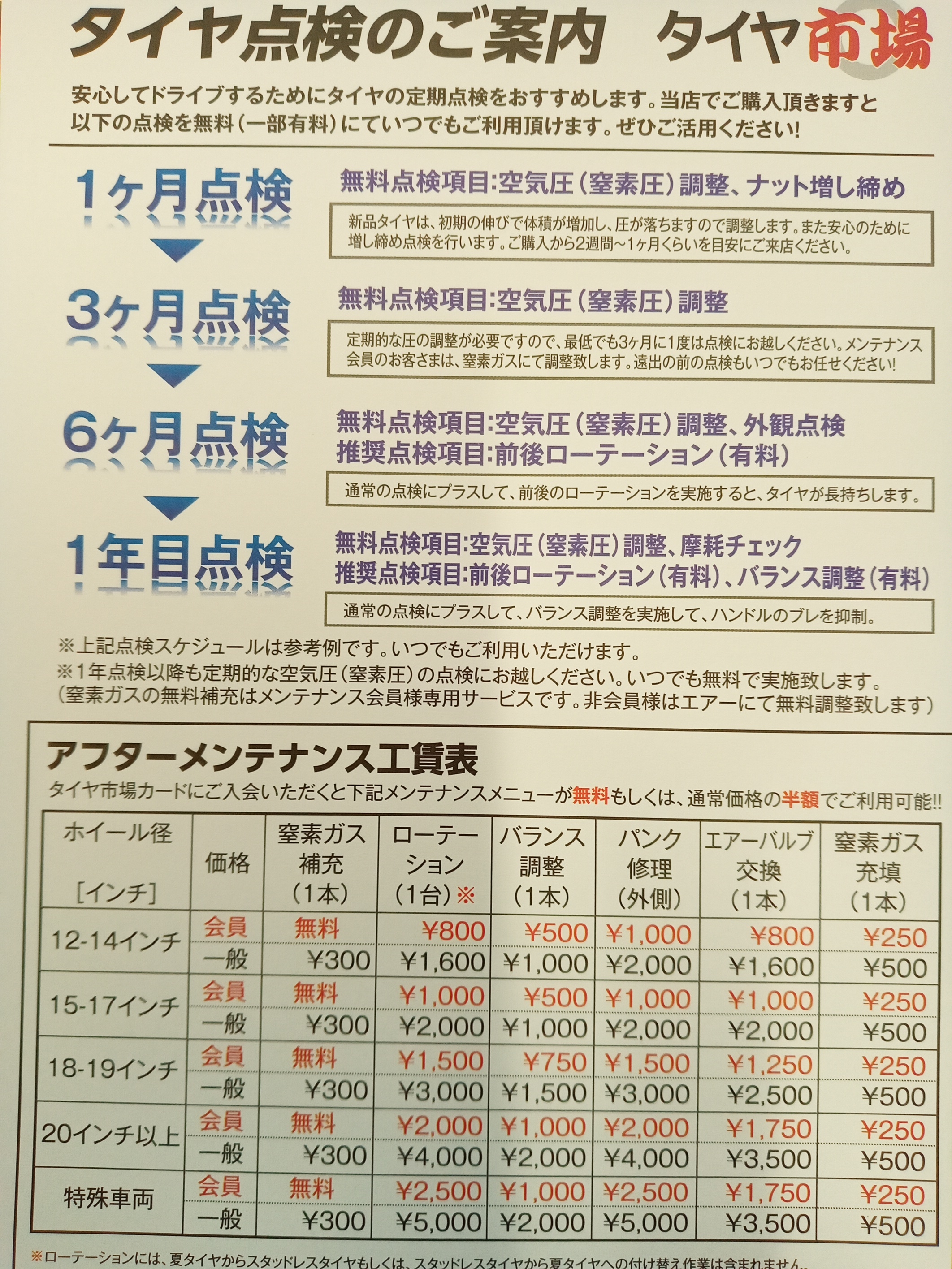 タイヤ市場のお得なタイヤ点検のご案内!!!