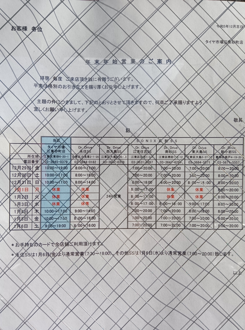 又、休業中のレンタルスタッドレスのお問い合わせは