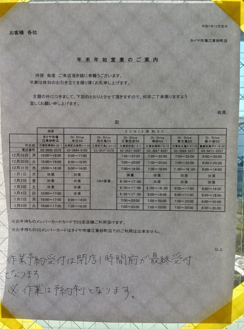 来年度もタイヤ市場江東砂町店を宜しくお願い致します。