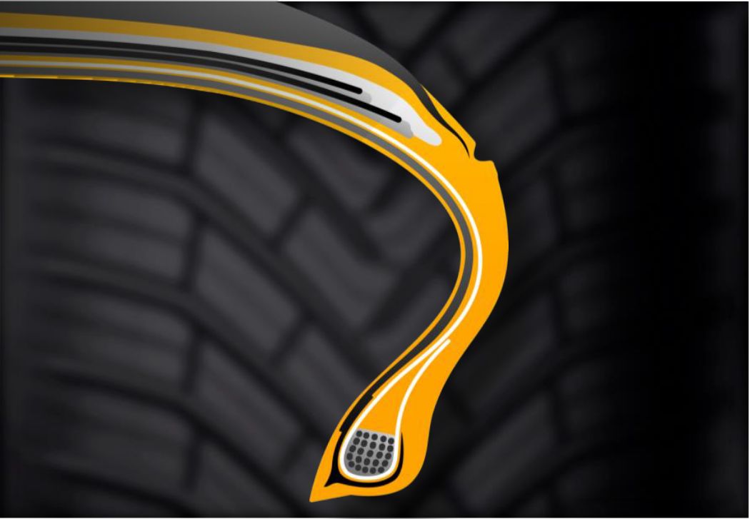 - 最適化されたサイドウォール形状と最適な溝深さによる 転がり抵抗の減少は、安全面を損なうことなく、燃料消費量の削減につながります。