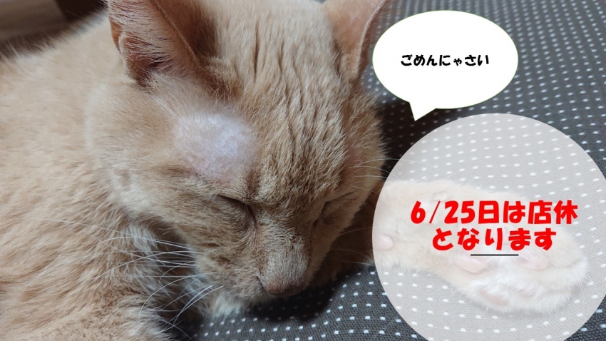 6月25日は店休となります。