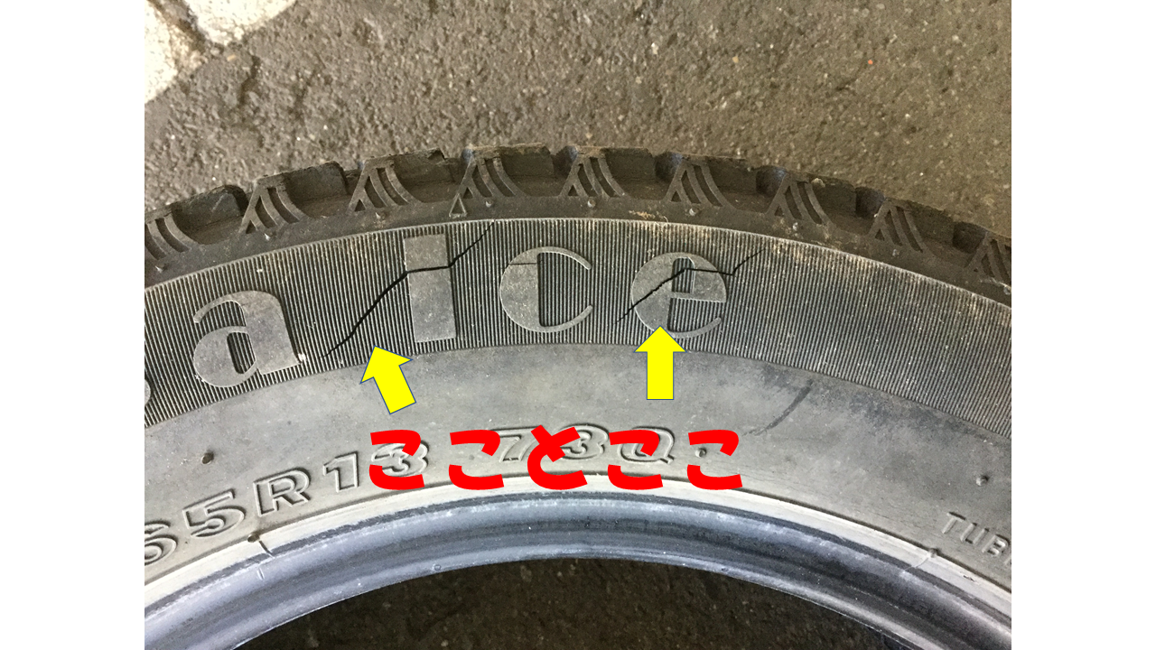 タイヤがまるで恋愛ドラマ終盤の恋人同士の関係ようにひび割れてしまっているのがお分かりいただけると思います!