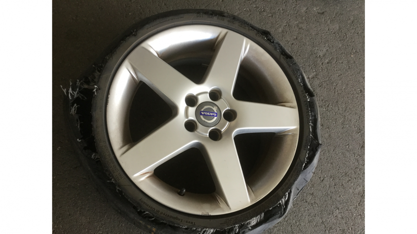 こちらのタイヤはパンクされた事に気づかず走行してしまい、その結果こんな状態に...