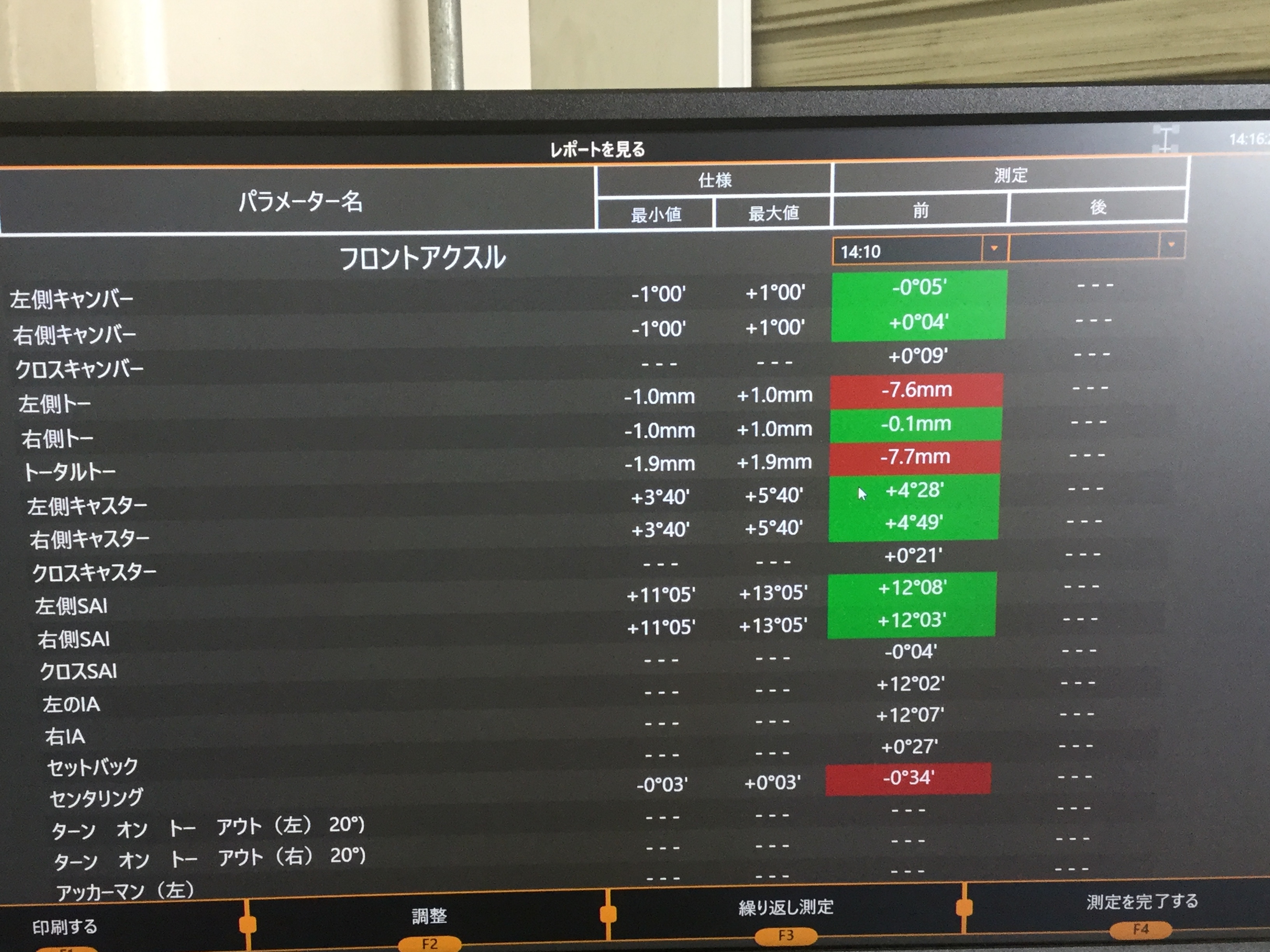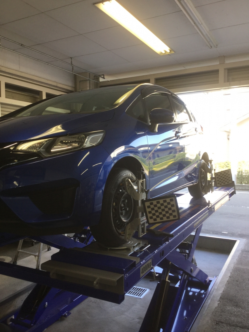本日、タイヤの付替えでご来店頂きましたフィットのお客様のアライメント調整をさせて頂きました。