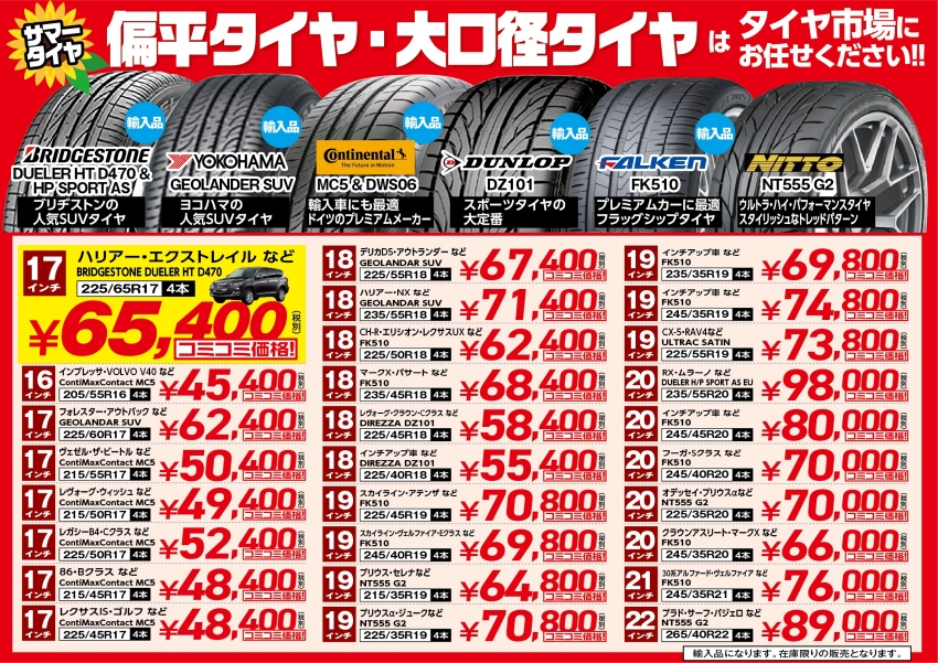 本日は、今当店で実施しているセール内容の中でも特にオススメ大口径タイヤのご紹介です❢❢❢❢❢