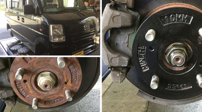 この箇所に関しましては、ホイールが密着する箇所となり錆が付着していますとホイールが密着してはめる事が出来ず、走行時にハンドルのブレ等が出る可能性が御座います( ..)φメモメモ