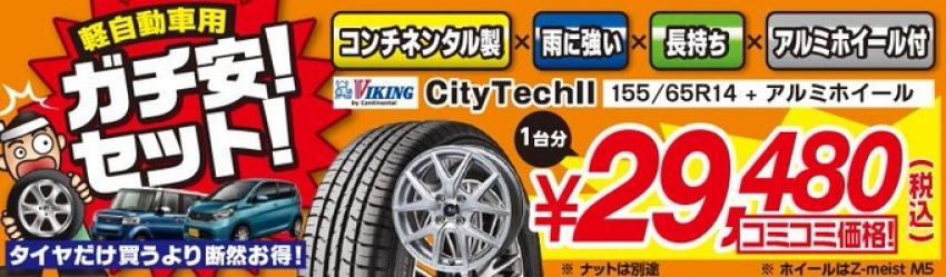 コンチネンタル製の155/65R14サイズのホイールセットがお買い得!!