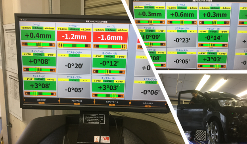 測定の結果、右前のタイヤが外開きになっていた事が原因でした( ..)φメモメモ