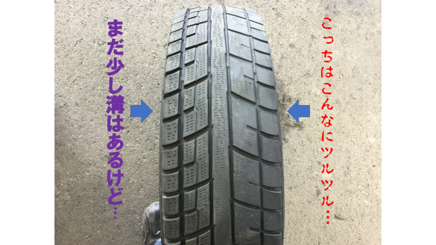 滑らかに減っているタイヤに比べ凸凹に減ってしまっているのがお分かりになると思います