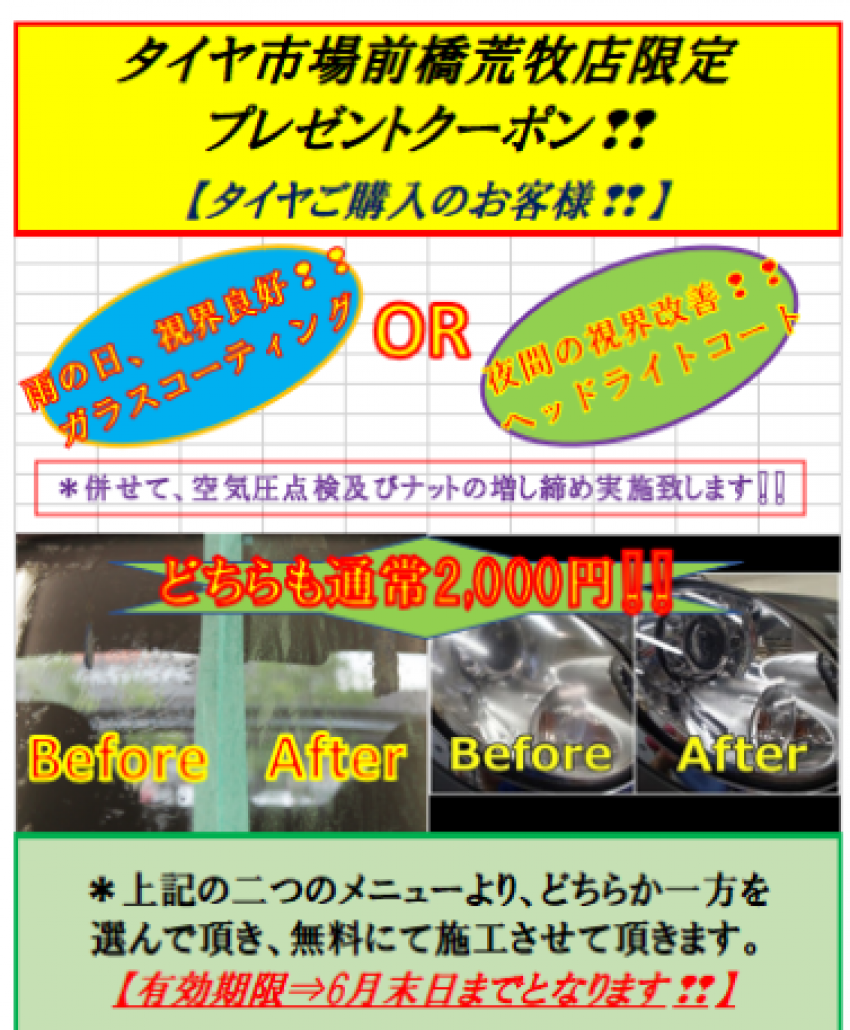 20日、21日にタイヤをご購入頂けましたお客様に漏れなく