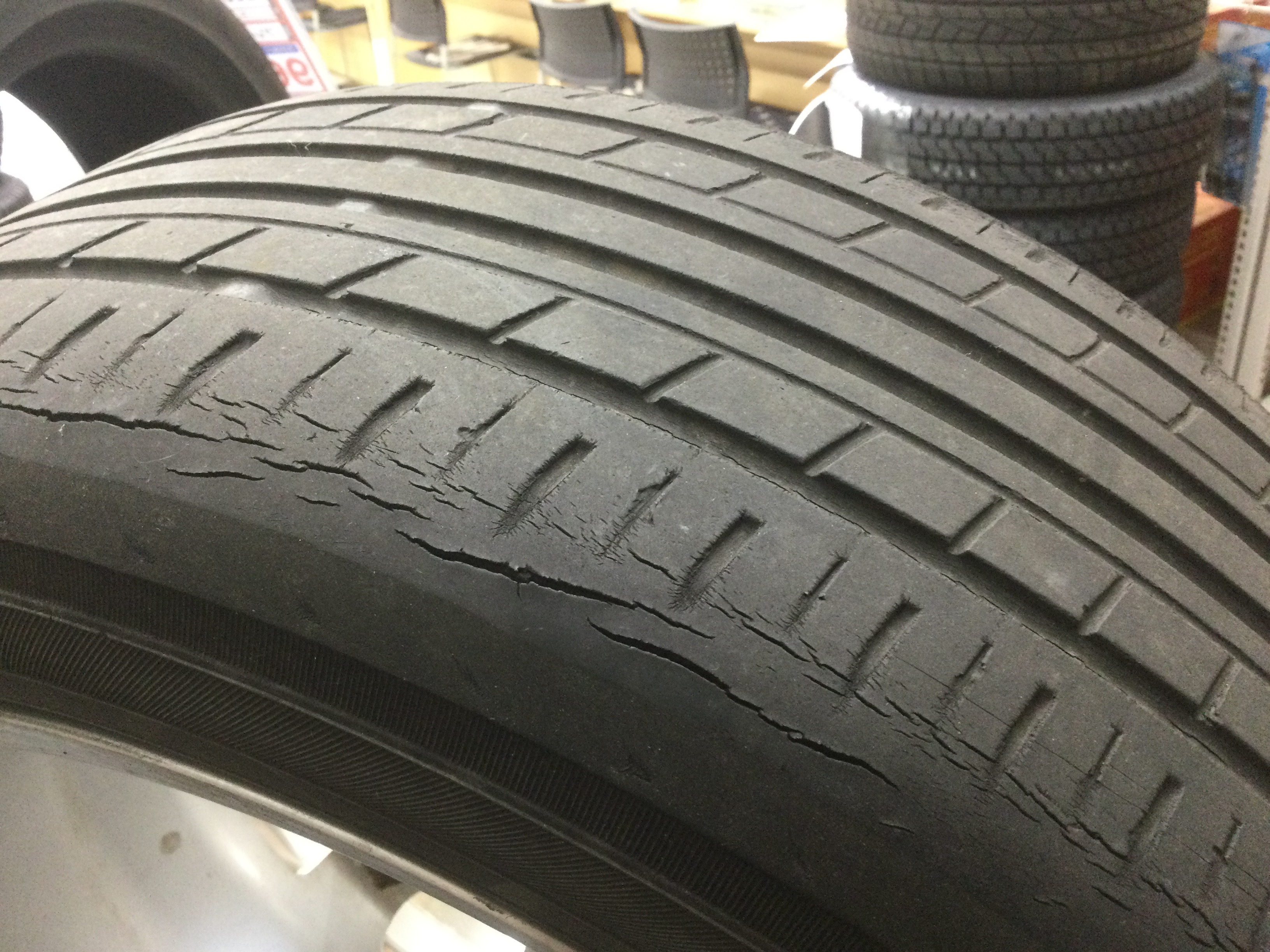 タイヤにくっきりとヒビが入っていることがわかると思います