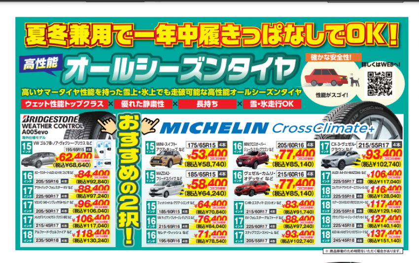 オールシーズンタイヤのセール内容について詳しく知りたい方は、下記の画像をクリックしてみて下さい!!