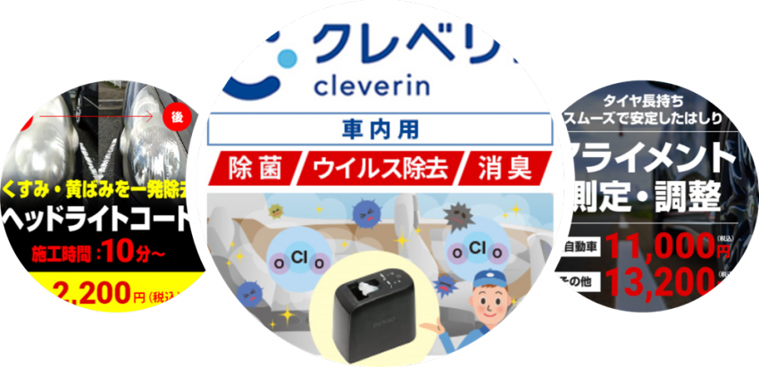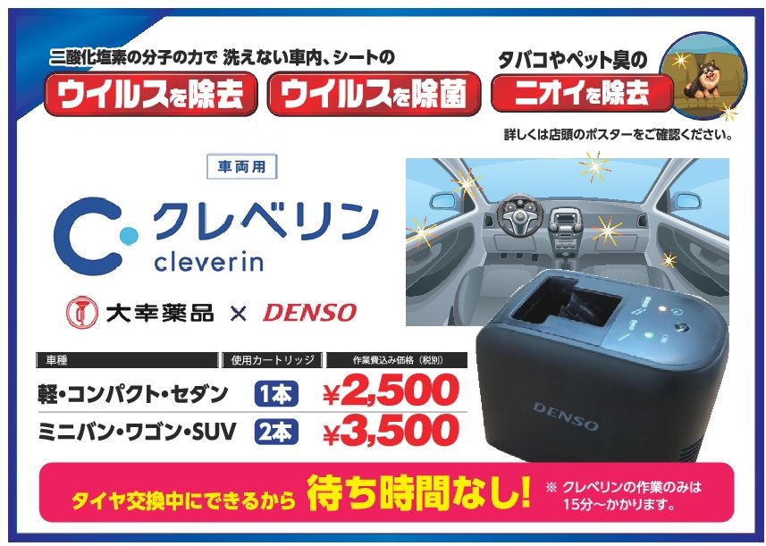 車内の消臭・除菌に効果が有りまして、これからの季節に人気の高いメニューとなります!(^^)!