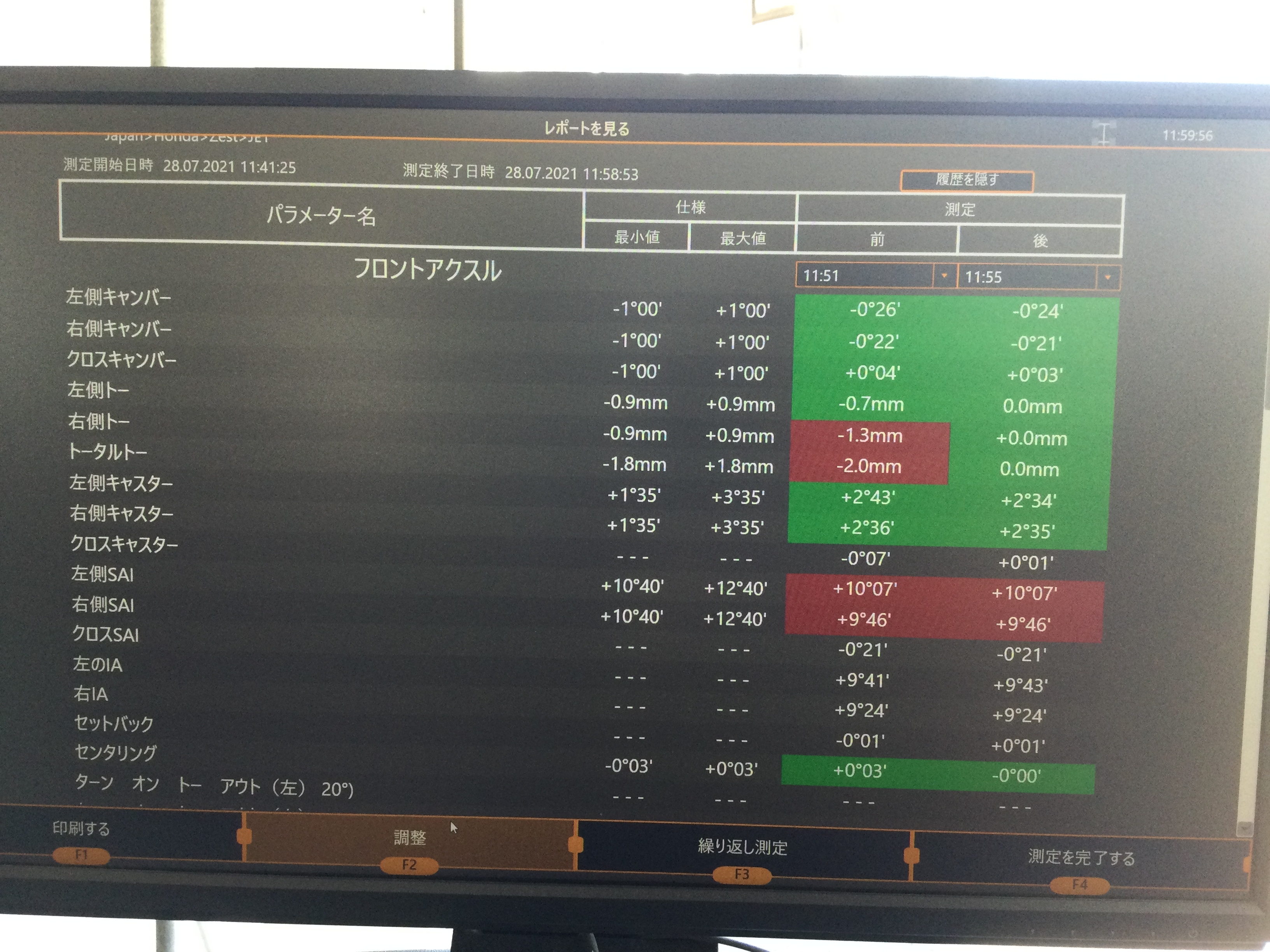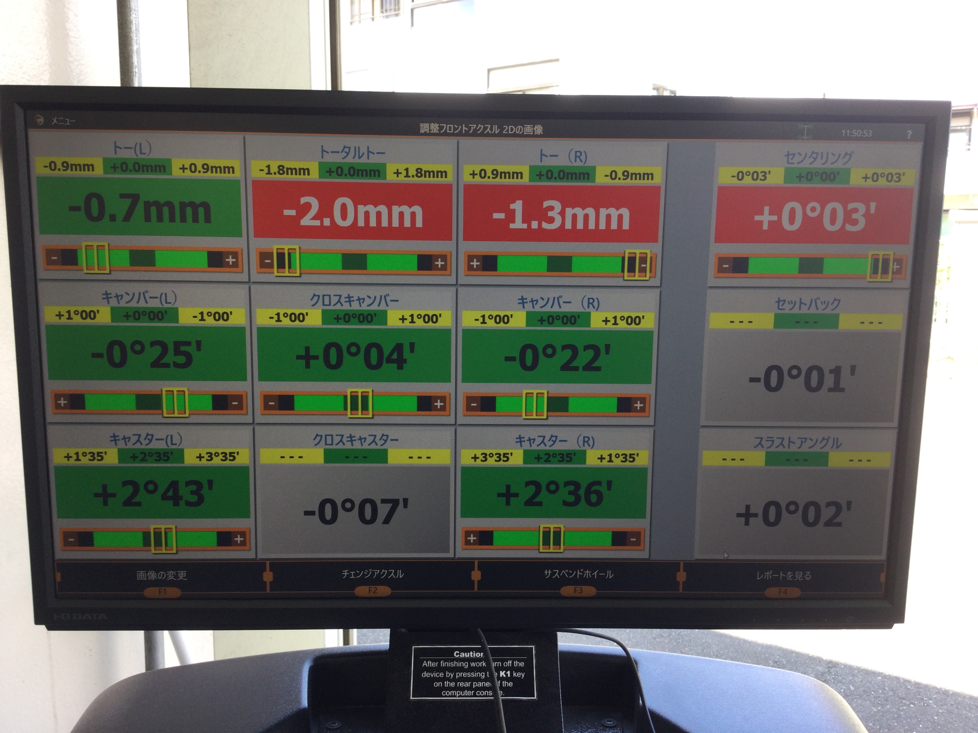 当店のスタッフにより、お客様のお車に合った数値に調整した後の数値がこちらになります・・・・・
