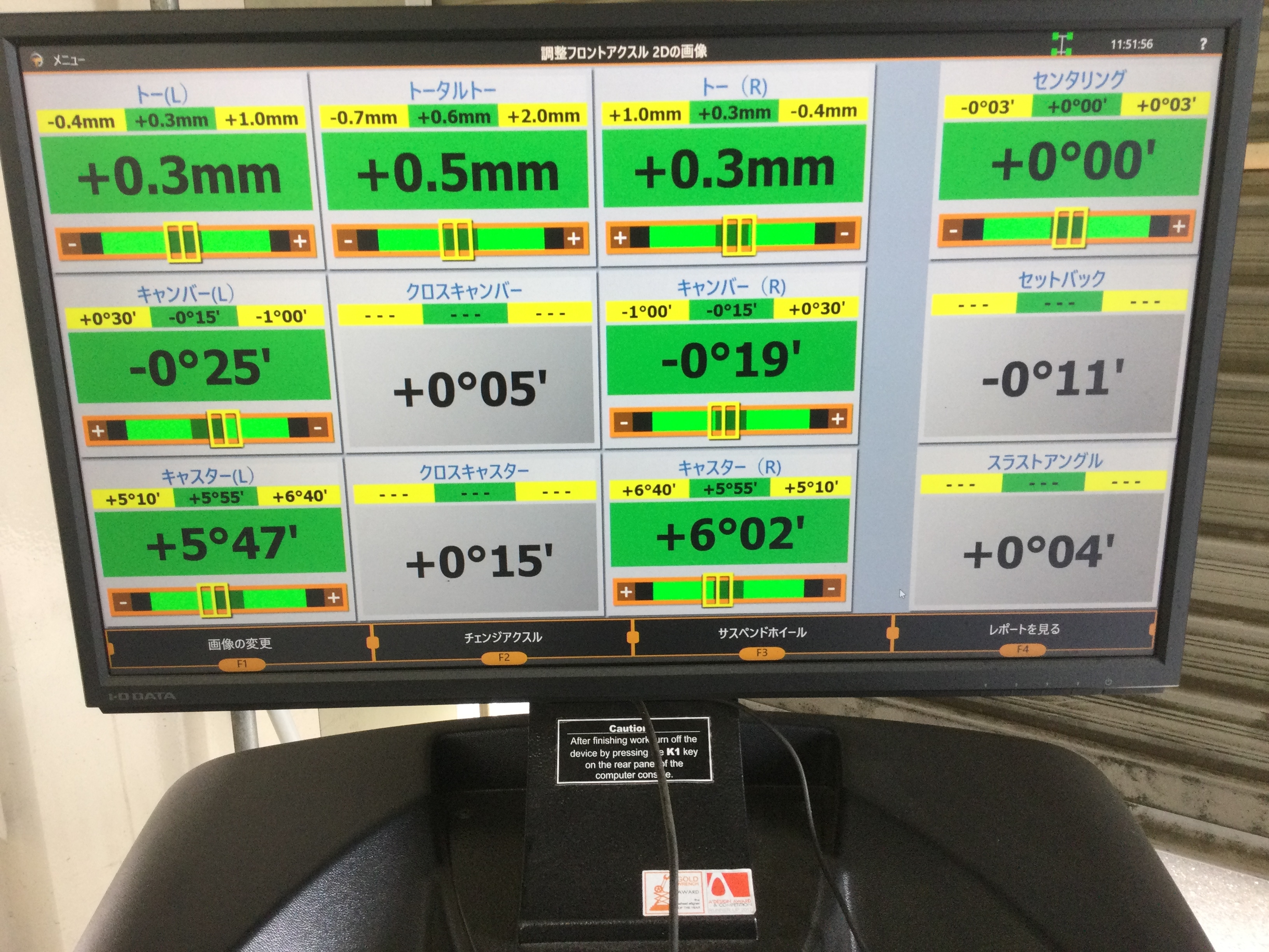 確りと基準値に調整させて頂きましたので、快適なカーライフをお過ごし頂けると思います!(^^)!