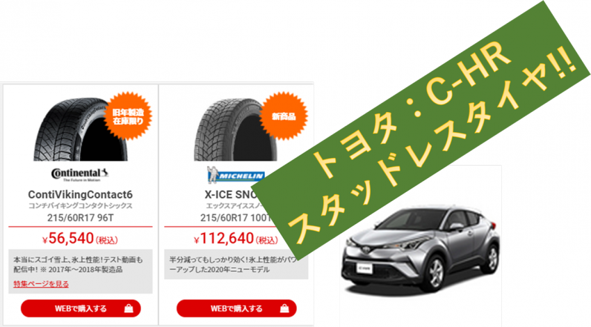 今回は、TOYOTA:C-HRにオススメの旧年製スタッドレスタイヤをご紹介致します!!
