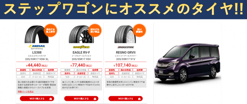 今回は、HONDAステップワゴンにオススメのお買い得タイヤ(205/55R17)をご紹介致します!(^^)!