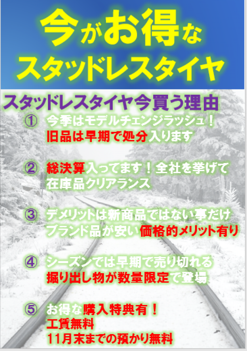 旧年製スタッドレス大特価セール開催中です!(^^)!