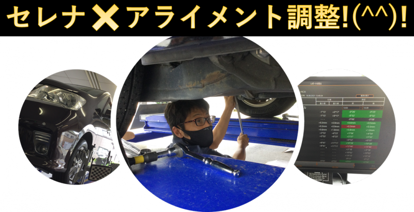 今回は、日産セレナにお乗りのお客様に当店にてタイヤをご購入頂きまして作業させて頂きました際にアライメント調整を実施させて頂きましたので、その様子をご紹介致します!!