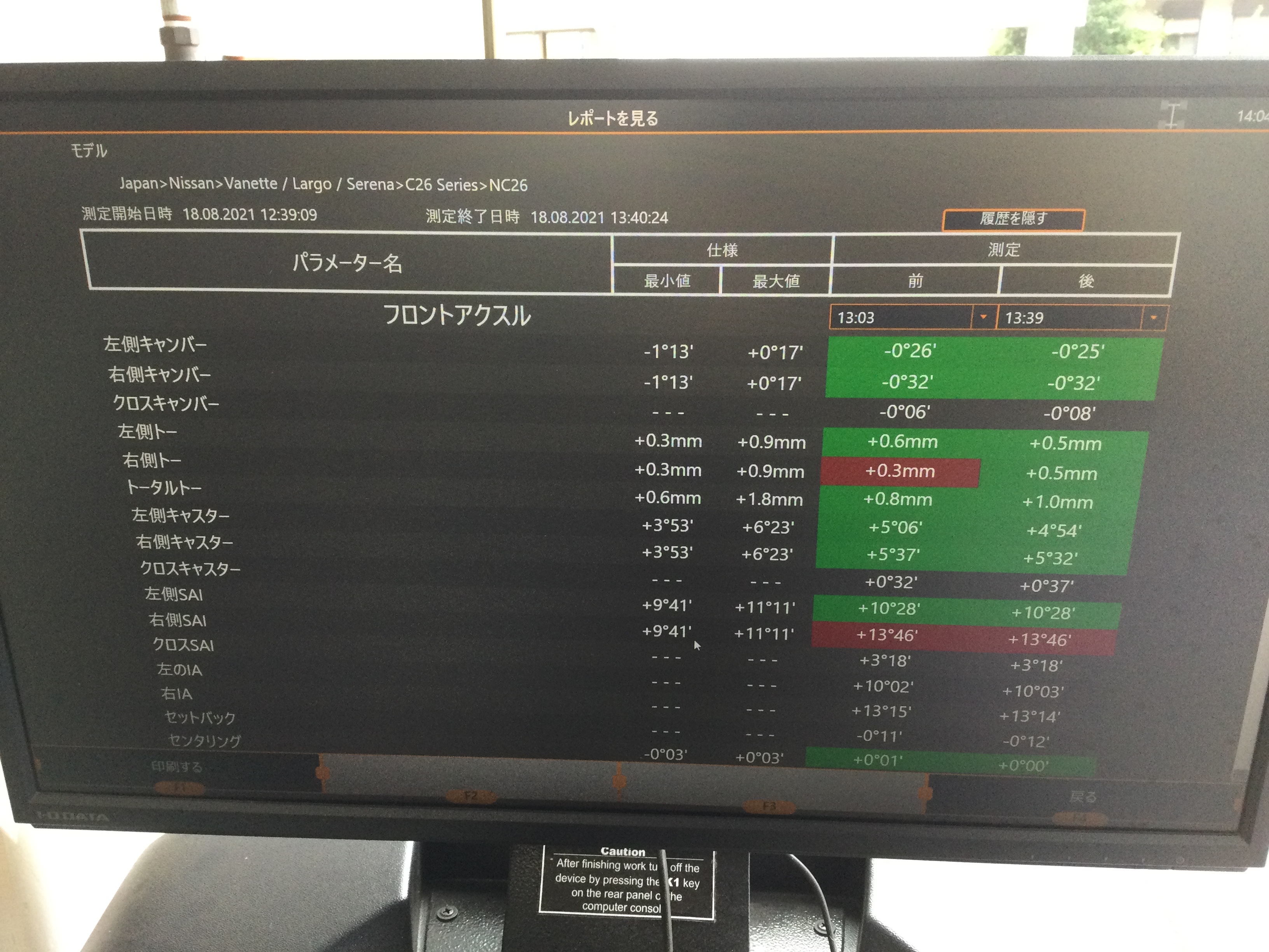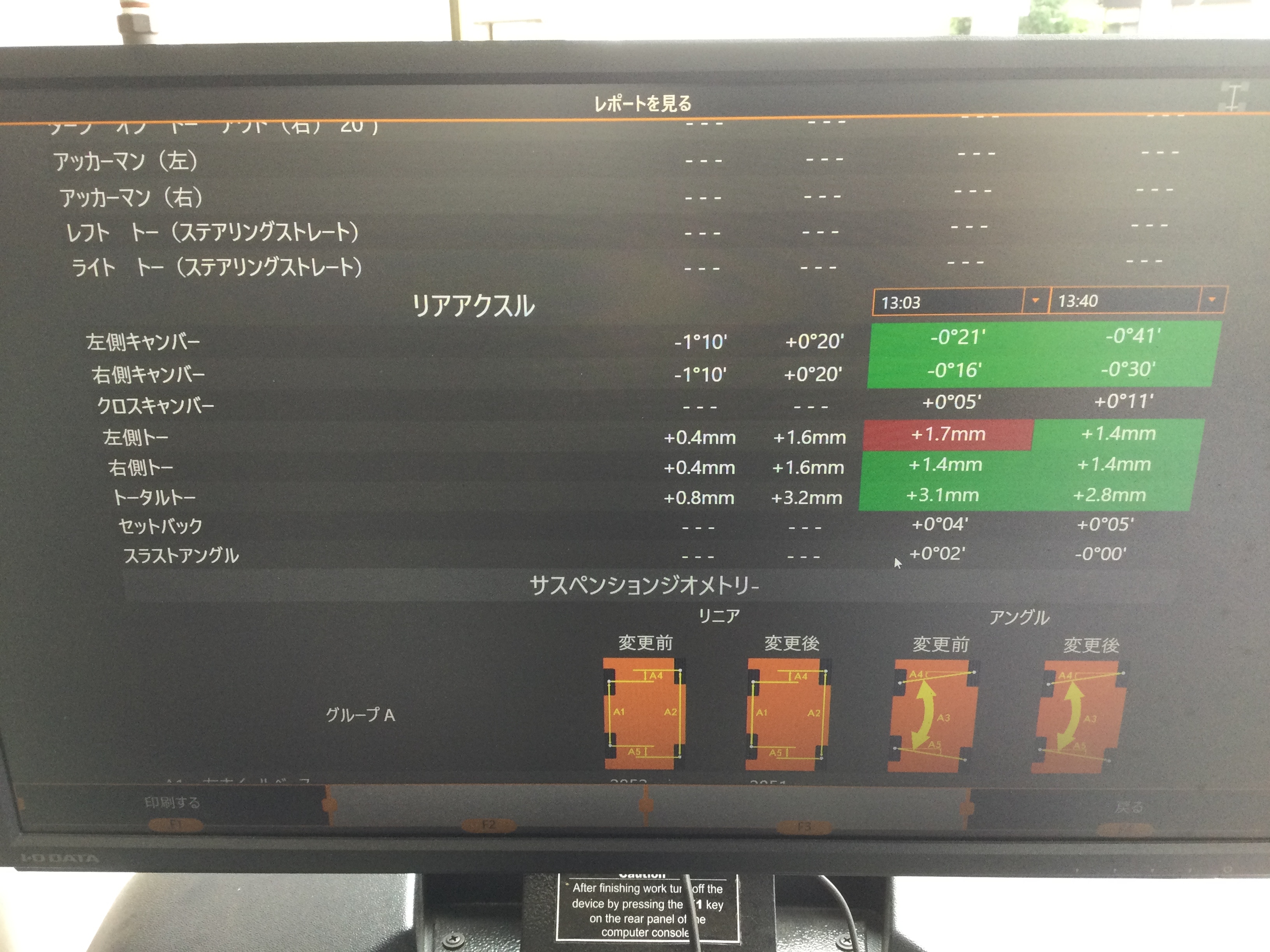 キッチリと基準値内に調整させて頂きましたので、快適なカーライフをお過ごし頂けると思います!(^^)!