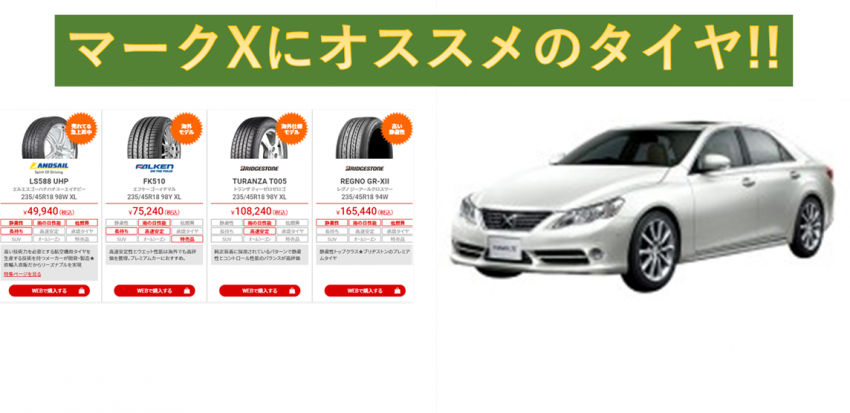 今回は、TOYOTAマークXにオススメのタイヤ(235/45R18)をご案内致します!!