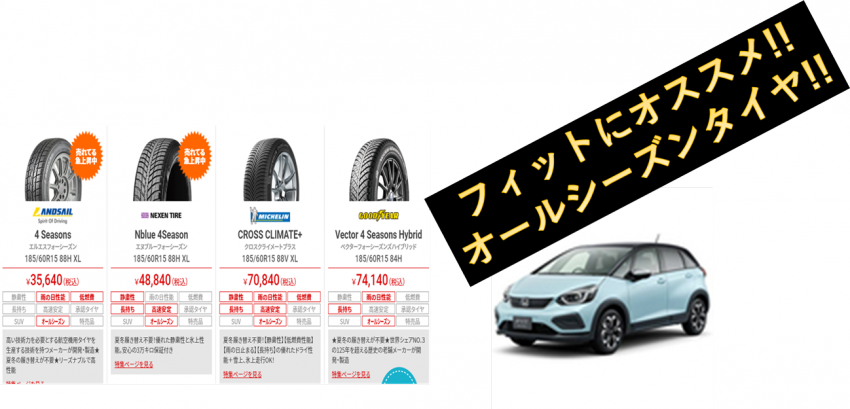 今回は、HONDAフィットにオススメのオールシーズンタイヤ(185/60R15)をご紹介致します!(^^)!