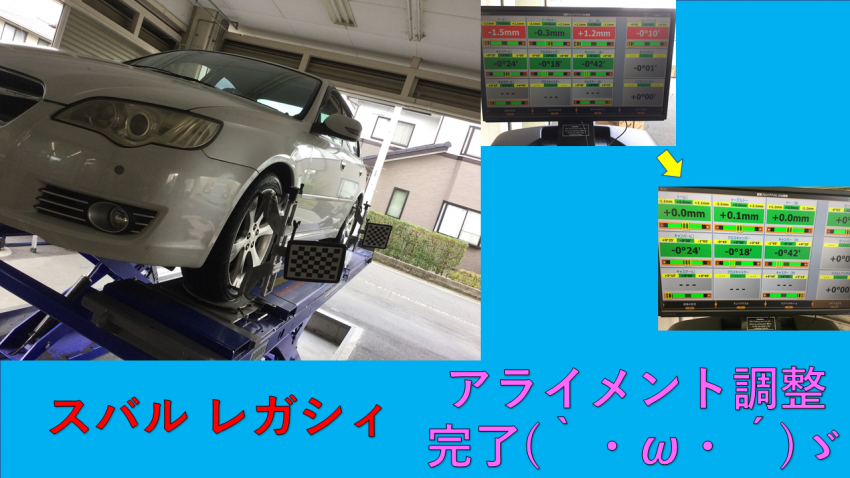 スバル レガシィ アライメント調整させて頂きました(`・ω・´)ゞ