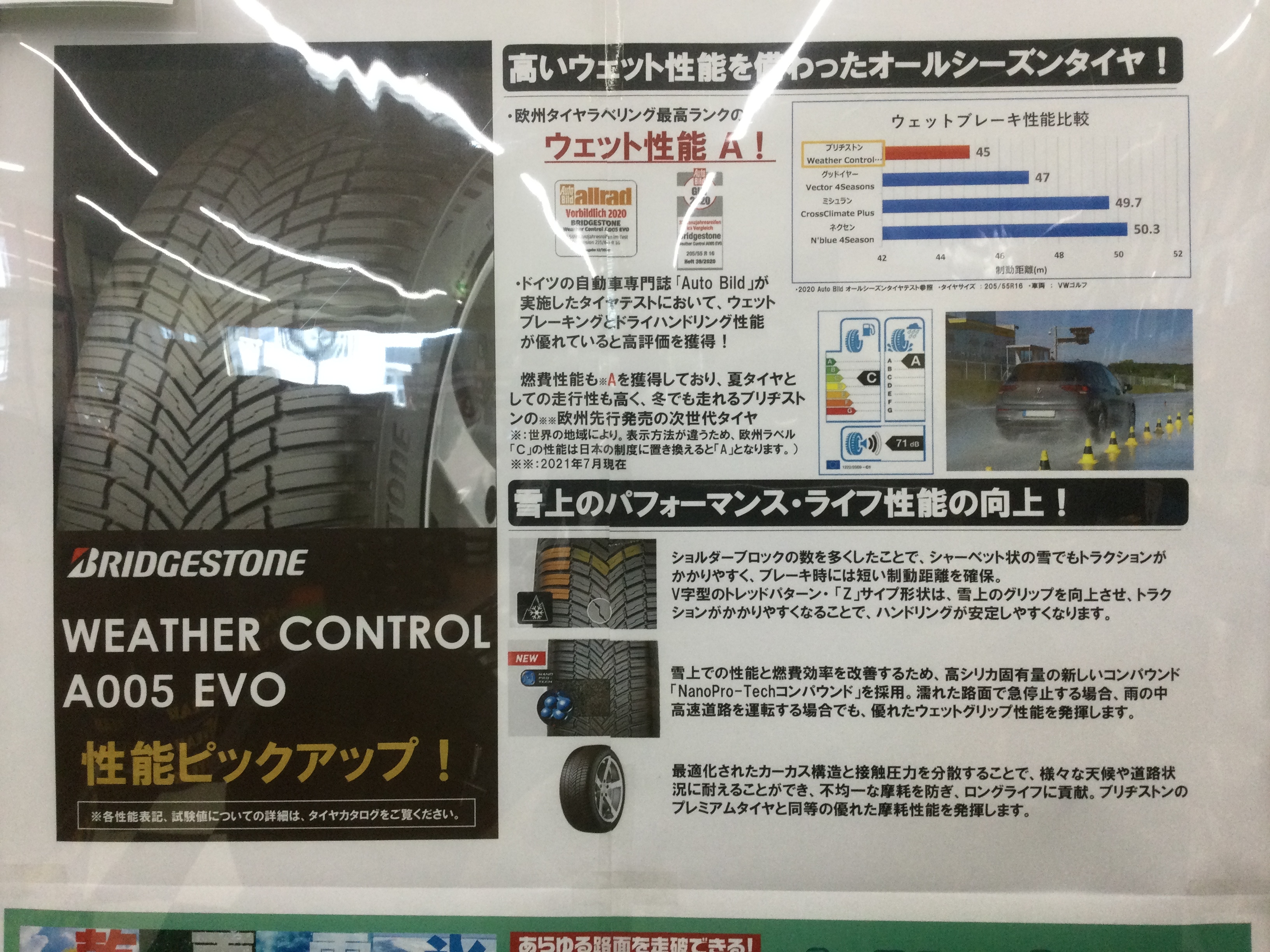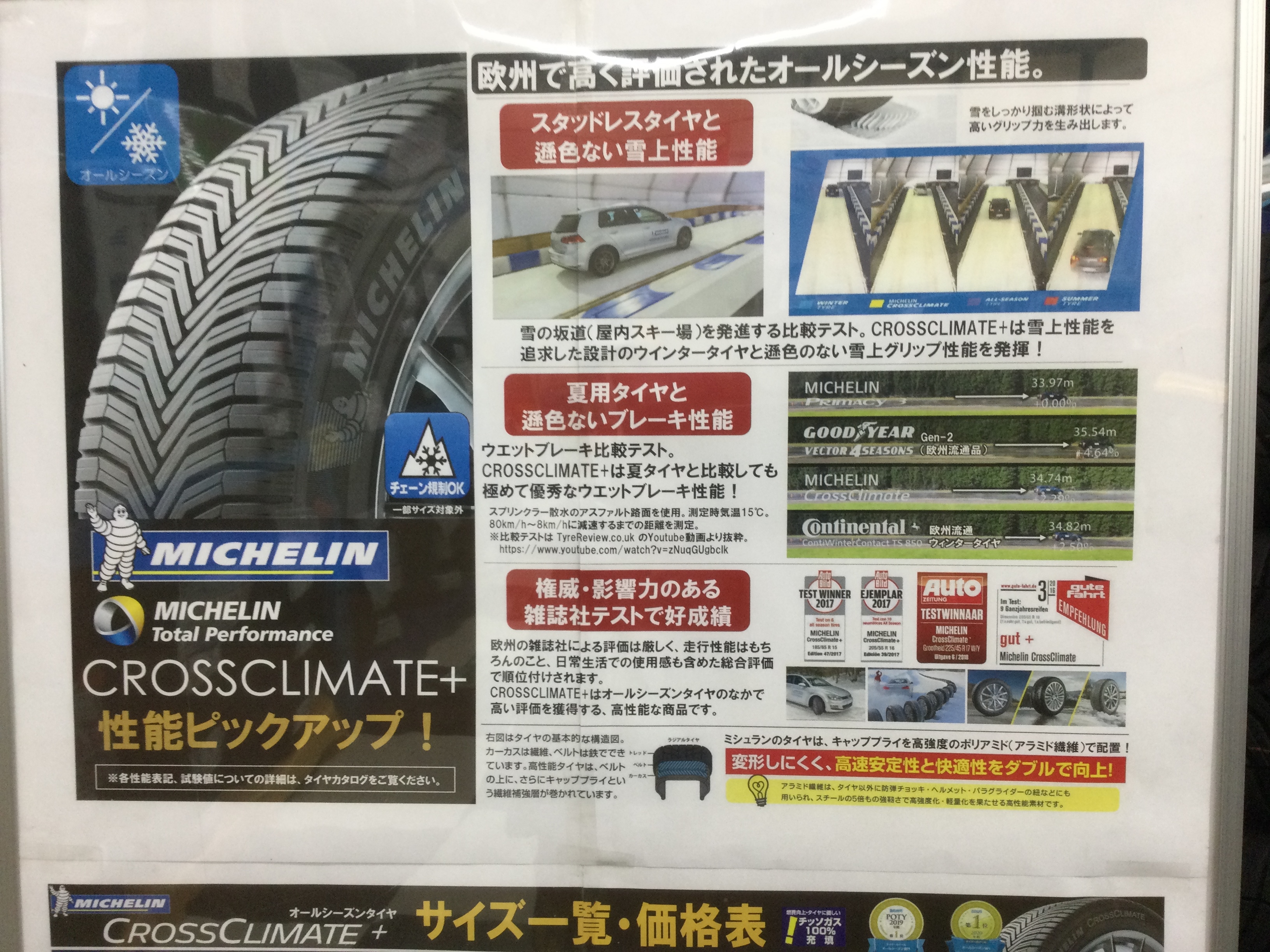 ミシュランのクロスクライメート+という商品やブリヂストンのウェザーコントロールという商品になるのですが、こちらの商品はオールシーズンタイヤでありながら、夏タイヤとしての性能も一切の妥協なしのオススメ品です!!