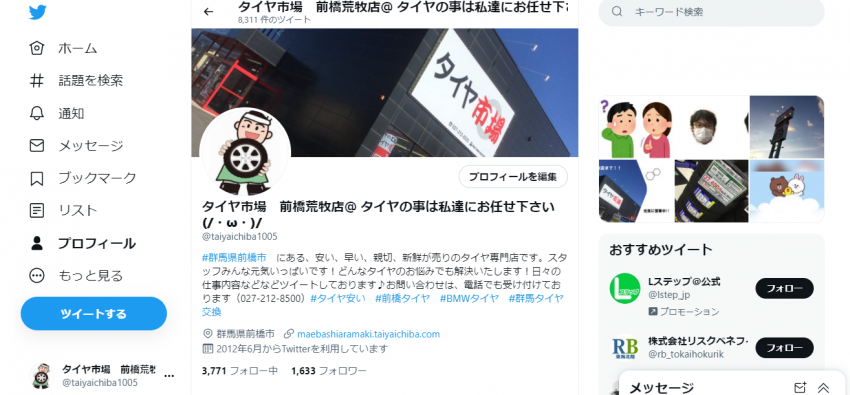 タイヤ市場荒牧店のTwitterが大人気です(^^♪