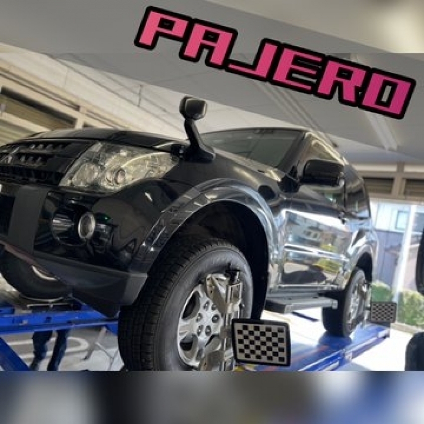 今回、三菱パジェロにお乗りのお客様よりアライメント調整を承り作業させて頂きましたので、その様子をご紹介致します!(^^)!