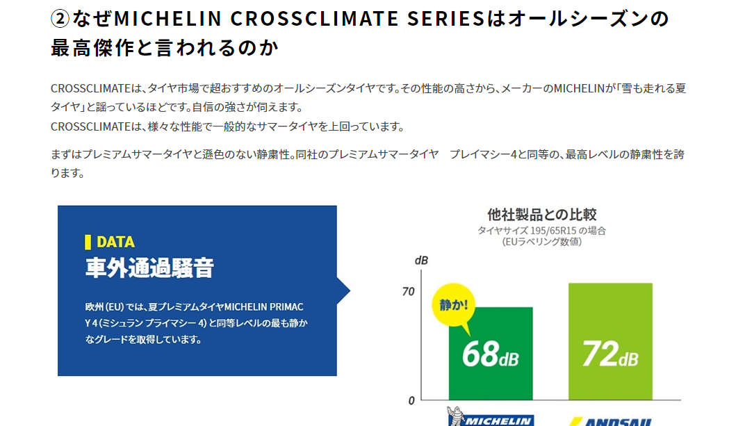 この内容を検証するにあたり、ミシュランのオールシーズンタイヤが夏タイヤの性能にも重きを置いた商品である事が有ります!!