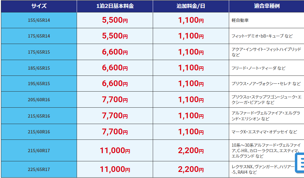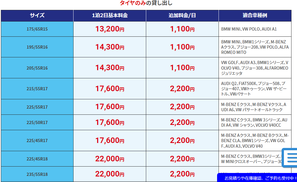 (一部適合サイズがレンタル品にない車種が御座いますので、ご了承下さい)